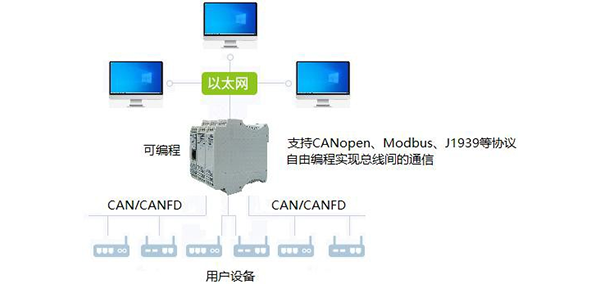 (9)可編程型號支持CANopen、Modbus、J1939等協(xié)議、支持CAN、CANFD自由口;