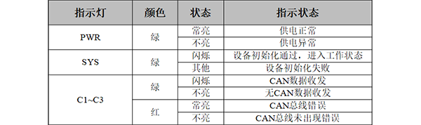 GCAN-GT-418-3系列模塊具有1個PWR指示燈、1個SYS指示燈、3個CAN總線狀態(tài)指示燈。