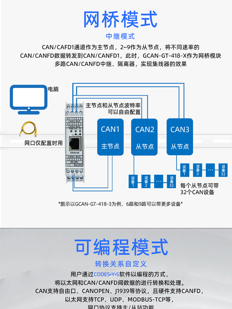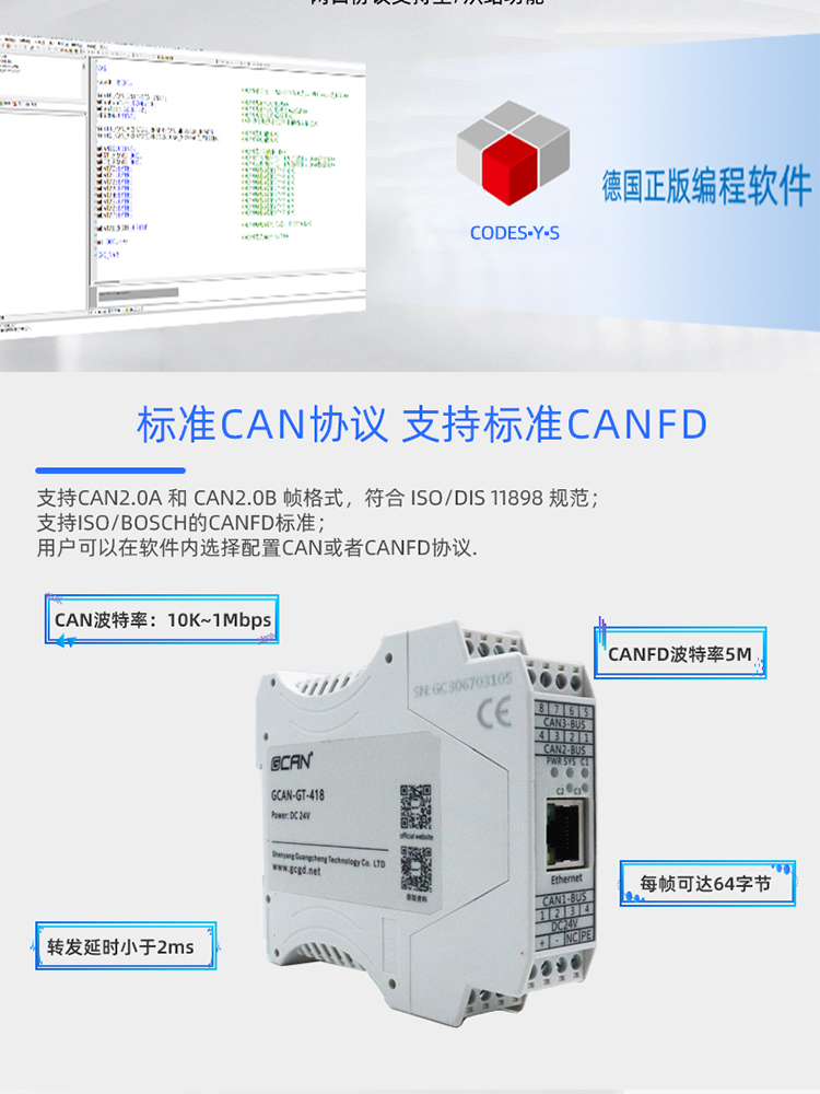 GCAN-418 以太網(wǎng)-CANFD網(wǎng)關(guān)/網(wǎng)橋/可編程網(wǎng)關(guān)