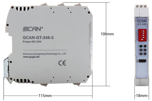 GCAN-GT-246系列尺寸相同:(長(zhǎng))115mm*(寬)18mm(高)108mm;如圖2.1所示: