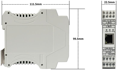 設(shè)備外形尺寸:(長(zhǎng),含接線端子)111.5mm*(寬)99.5mm*(高)22.5mm,其示意圖如圖所示
