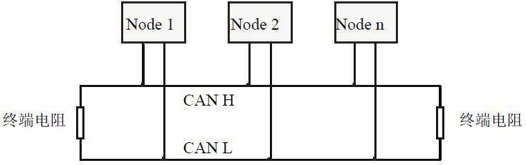 為了增強(qiáng)CAN通訊的可靠性,消除CAN總線終端信號(hào)反射干擾,CAN總線網(wǎng)絡(luò)最遠(yuǎn)的兩個(gè)端點(diǎn)通常要加入終端匹配電阻,如圖所示。終端匹配電阻的值由傳輸電纜的特性阻抗所決定。例如雙絞線的特性阻抗為120Ω,則總線上的兩個(gè)端點(diǎn)也應(yīng)集成120Ω終端電阻。如果網(wǎng)絡(luò)上其他節(jié)點(diǎn)使用不同的收發(fā)器,則終端電阻須另外計(jì)算。