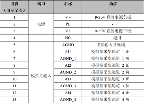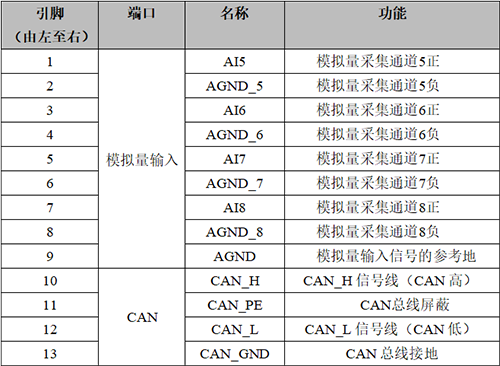 GCAN-4038模塊集成一路DC9-30V電源接口、1路標(biāo)準(zhǔn)CANopen接口、8路模擬量輸入接口。GCAN-4038模塊電源接口、4路模擬量輸入接口位置如圖所示,接口定義如表所示。