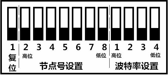 (8)使用撥碼開關(guān)配置模塊波特率及節(jié)點(diǎn)號(hào);