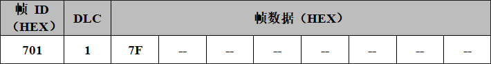 GCAN-4038模塊滿足標(biāo)準(zhǔn)CANopen CiA 301協(xié)議,是標(biāo)準(zhǔn)的CANopen從站設(shè)備。GCAN-4038啟動(dòng)后將主動(dòng)發(fā)出數(shù)據(jù)給主站,幀ID為0x700+Node ID。幀數(shù)據(jù)為0x7F,默認(rèn)循環(huán)時(shí)間為1s(對(duì)象字典0x100C,節(jié)點(diǎn)守護(hù)時(shí)間)。這說明節(jié)點(diǎn)處于預(yù)操作狀態(tài)。