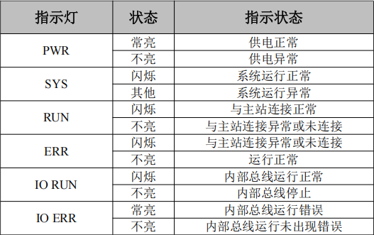 GCAN-IO-8001總線耦合器模塊指示燈狀態(tài)