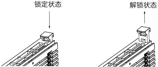 GCAN-IO-8001總線耦合器的鎖定和解鎖狀態(tài)如圖所示。當(dāng)模塊未安裝在導(dǎo)軌上時,請將導(dǎo)軌鎖扣保持在鎖定狀態(tài),如長時間處于解鎖狀態(tài),可能會導(dǎo)致鎖扣失效。