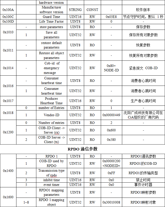 - GCAN-8001型CANopen總線耦合器的設(shè)備參數(shù)包括: