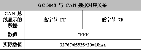 多組GC-3048模塊與CAN數(shù)據(jù)對應(yīng)關(guān)系