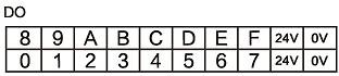 GCAN-5032 EtherCAT遠(yuǎn)程IO模塊的主控模塊含有上下四排端子排,下方兩排端子排為DO端子排,分別為DO0~DO7,DO8~DOF共16個(gè)數(shù)字量輸出點(diǎn),以及2組IO電源輸入(請(qǐng)任選1組IO工作電源接口接入24V即可,注意同時(shí)需要接入系統(tǒng)電源,系統(tǒng)電源詳見表,IO工作電源與系統(tǒng)電源彼此隔離),如圖所示。各個(gè)端子對(duì)應(yīng)的序號(hào)及其含義如表所示。
