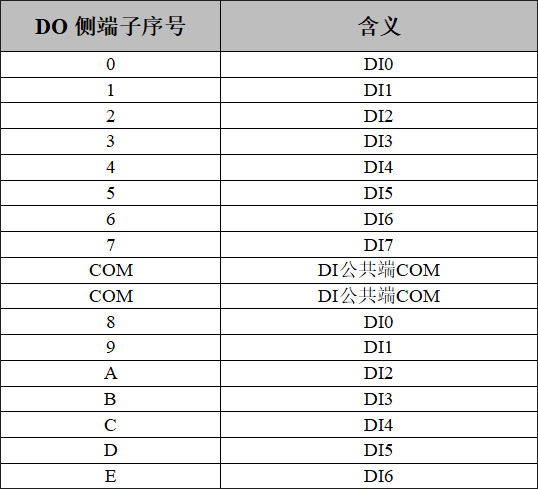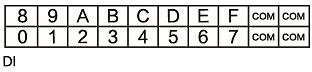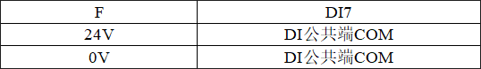 上方兩排端子為DI端子排,分別為DI0~DI7,DI8~DIF共16個(gè)數(shù)字量輸入點(diǎn),以及4個(gè)DI的COM接口(4個(gè)COM口任意連接1個(gè)即可),如圖所示。各個(gè)端子對(duì)應(yīng)的序號(hào)及其含義如表所示。