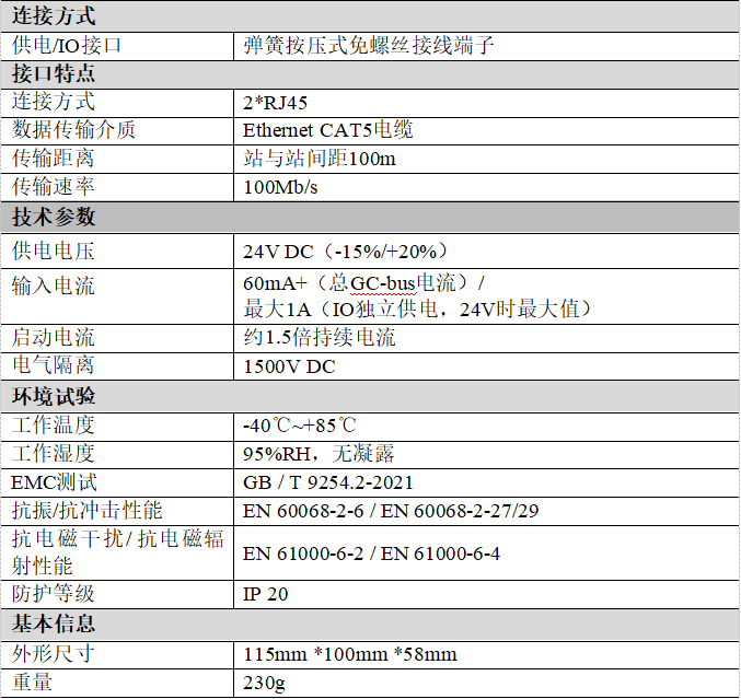 沈陽(yáng)廣成科技GCAN-5032 EtherCAT遠(yuǎn)程IO模塊的設(shè)備參數(shù)包括: