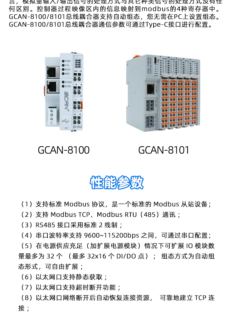 - (1)與分布式總線端子模塊相連接,構(gòu)成一個(gè)完整的控制節(jié)點(diǎn); (2)執(zhí)行數(shù)據(jù)采集并以Modbus協(xié)議進(jìn)行數(shù)據(jù)傳輸。