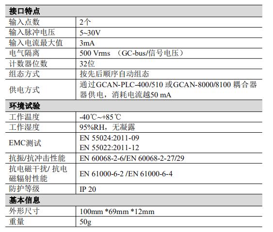 - GC-1502 模塊是集成 2 路脈沖計數器,該計數器可用于實時采集脈沖信號, 并將采集到的數值通過內部總線發(fā)送給 GCAN-PLC-400/510 或 GCAN-IO-8000/8100 系列耦合器
