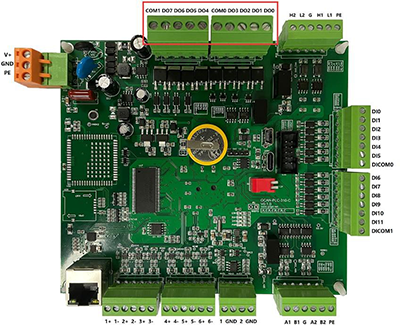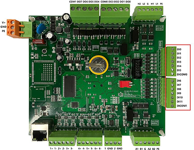 GCAN-PLC-310主控模塊的數(shù)字量輸入接口引腳定義如下圖及下表。其中COM0為DI0~DI5前6路公共端;COM1為DI6~DI11后6路公共端;當(dāng)公共COM端接入低電平時,公共端對應(yīng)的該組DI可作為源型數(shù)字量輸入使用;當(dāng)公共COM端接入高電平時,公共端對應(yīng)的該組DI可作為漏型數(shù)字量輸入使用。