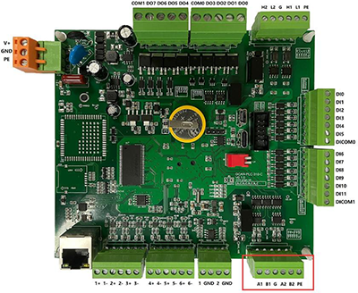 GCAN-PLC-310主控模塊的RS485總線接口引腳定義如下圖及下表。支持自由協(xié)議、Modbus RTU主/從站協(xié)議。