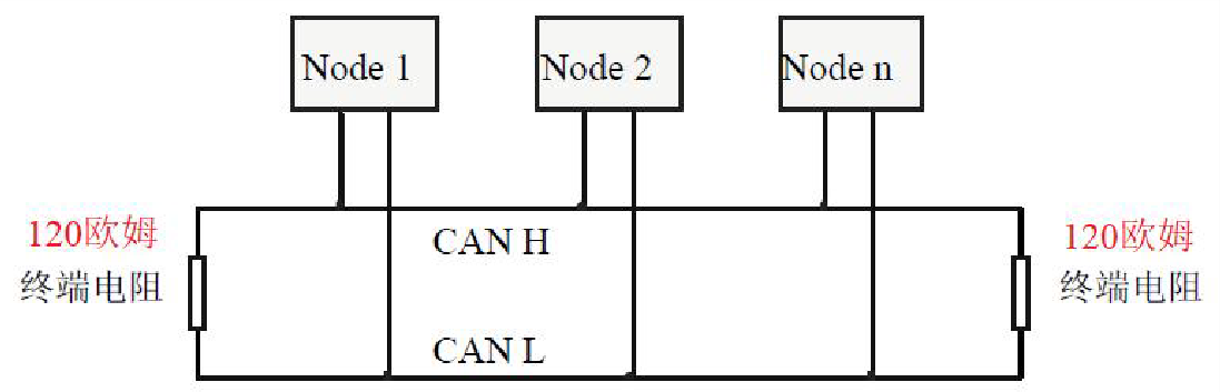 為了增強CAN通訊的可靠性,消除CAN總線終端信號反射干擾,CAN總線網(wǎng)絡(luò)最遠(yuǎn)的兩個端點通常要加入終端匹配電阻,如圖所示。終端匹配電阻的值由傳輸電纜的特性阻抗所決定。例如雙絞線的特性阻抗為120Ω,則總線上的兩個端點也應(yīng)集成120Ω終端電阻。如果網(wǎng)絡(luò)上其他節(jié)點使用不同的收發(fā)器,則終端電阻須另外計算。