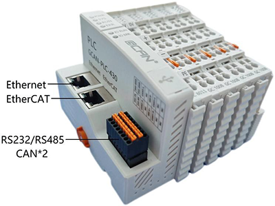 GCAN-PLC-430可使用OpenPCS軟件對(duì)其編程,也可使用CodeSys V3.5SP16及以上版本軟件對(duì)其編程。軟件支持符合IEC-61131-3標(biāo)準(zhǔn)中規(guī)定的五種標(biāo)準(zhǔn)編程語(yǔ)言,這使得程序的可移植性和復(fù)用性很強(qiáng),而且軟件還具有多種調(diào)試功能(斷點(diǎn)、單步等),調(diào)試程序更加方便。GCAN-PLC-430不僅可完成各種數(shù)字/模擬量的輸入/輸出,還集成了多種常用的工業(yè)現(xiàn)場(chǎng)總線,如:CAN總線、485總線、232總線、以太網(wǎng)總線、EtherCAT總線,并支持常見(jiàn)的通信協(xié)議如:CANopen、ModbusRTU、ModbusTCP、EtherCAT等。