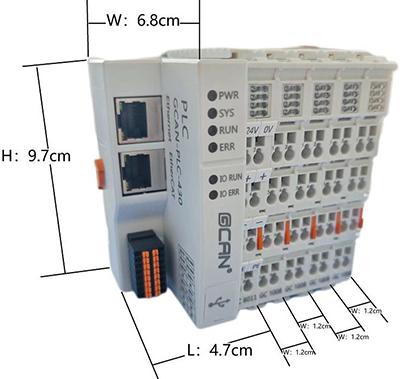 一、功能概述GCAN-PLC-430是集成有總線控制功能的、帶EtherCAT主站控制的可編程邏輯控制器(PLC)。其不僅具有外觀簡(jiǎn)約、高性價(jià)比的特點(diǎn),還可以方便的連接入CAN總線系統(tǒng)及Modbus系統(tǒng)等,并可通過(guò)插片式IO模塊進(jìn)行擴(kuò)展。GCAN-PLC-430產(chǎn)品由一個(gè)可編程的主控模塊、若干GC系列IO模塊(GC-1008、GC-2008等)以及一個(gè)終端電阻模塊組成。GCAN-PLC-430主控模塊可連接所有的GC系列IO模塊,用戶可根據(jù)現(xiàn)場(chǎng)實(shí)際需求自行選擇擴(kuò)展IO模塊,IO模塊數(shù)量最多可擴(kuò)展32個(gè),主控模塊可根據(jù)插入IO模塊的前后位置自動(dòng)分配地址,實(shí)現(xiàn)自動(dòng)組態(tài)。