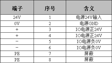 GCAN-PLC-430的電源接線端子排如圖所示,其接口定義如表所示。GCAN-PLC-430可編程邏輯控制器電源部分包含8個(gè)端子,需要注意的是:3號(hào)端子與4號(hào)端子之間、5號(hào)端子與6號(hào)端子之間、7號(hào)端子與8號(hào)端子之間,在模塊的內(nèi)部是相連的。
