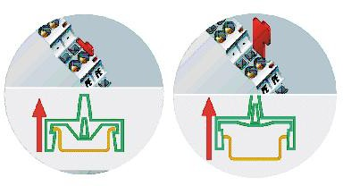 請按圖所示,把GCAN-PLC安裝在導軌上,直到卡扣卡緊發(fā)出“咔”的聲音。之后您需要逆時針旋轉(zhuǎn)控制器外殼左端的橙色旋鈕,將控制器的左端牢固地固定在導軌上。GCAN-PLC具有自鎖機制,可有效防止設(shè)備掉落,如圖所示。您可以拉拽橙色拉桿帶動卡扣松動后將控制器及IO模塊從導軌上取下,橙色拉桿拉動分為兩個階段,第一次拉動只是將拉桿拽出,在拉出后繼續(xù)拽動會感受到明顯的阻力,這個時候才會松動卡扣。取下控制器之前,您需要順時針旋轉(zhuǎn)控制器外殼左端的橙色旋鈕,解除鎖定狀態(tài)。