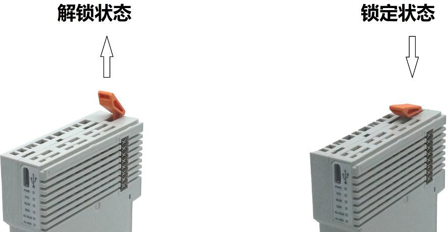 圖2.2 GCAN-PLC-325可編程邏輯控制器模塊鎖定和解鎖狀態(tài)