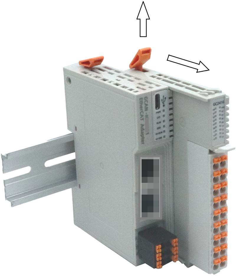GCAN-PLC-325可編程邏輯控制器最多可以連接32個擴(kuò)展IO模塊。插入擴(kuò)展IO模塊時,一定要沿著凹槽,在已有模塊的右側(cè)順次插入,再按下鎖扣并并發(fā)出“咔”的一聲。在整個節(jié)點(diǎn)的最右端,您需要安裝終端端子模塊,請注意終端模塊安裝方向。該終端可以保障GC-Bus的數(shù)據(jù)傳輸與電力供應(yīng)。
