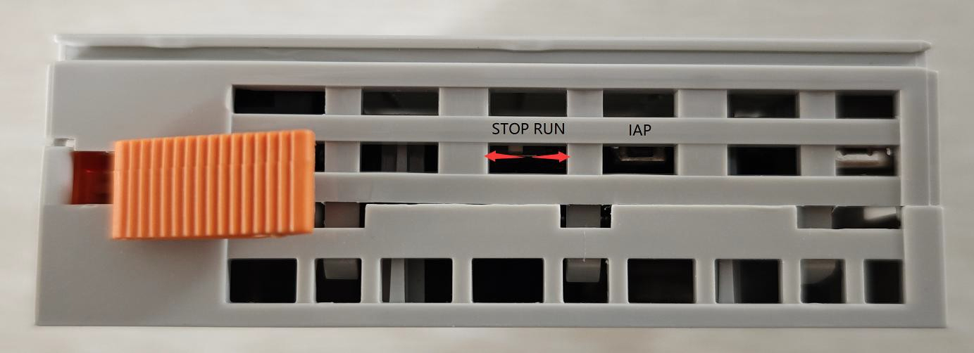 GCAN-PLC-325提供1個程序運(yùn)行開關(guān)和1個復(fù)位按鍵。設(shè)備頂端實(shí)物圖如圖4.1所示: