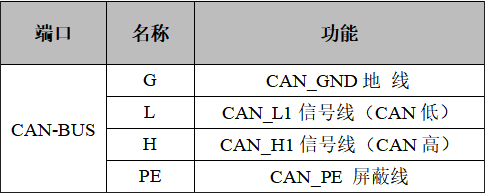 GCAN-GT-419模塊CAN-bus接口由1個4 Pin接線端子引出,有2個獨立的CAN接口,其接口定義如表所示。